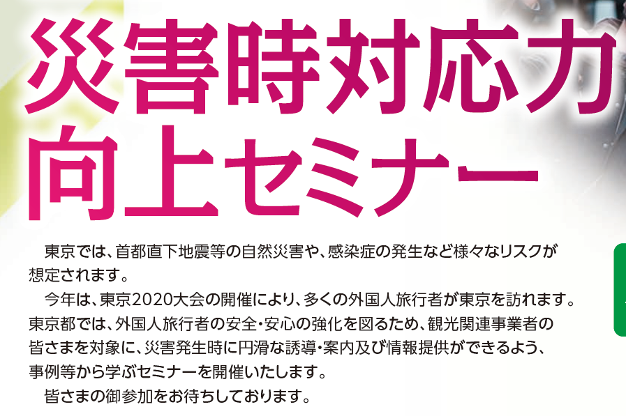 「訪日外国人防災」感染症発生等の災害情報に関する自主調査結果を「東京都主催 観光事業者のた...