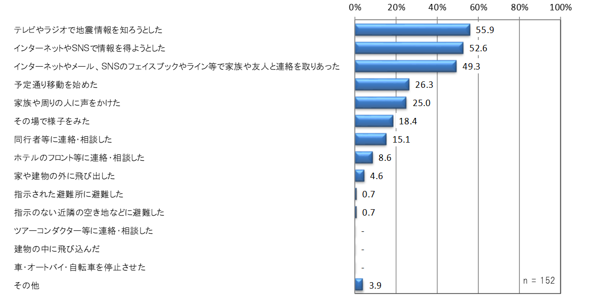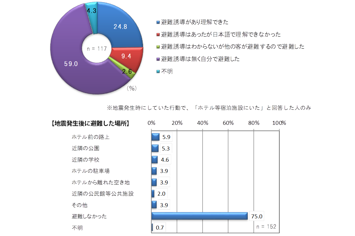 ・調査内容:地震発生時の行動/宿泊施設の避難誘導について/地震発生時に困ったことなど