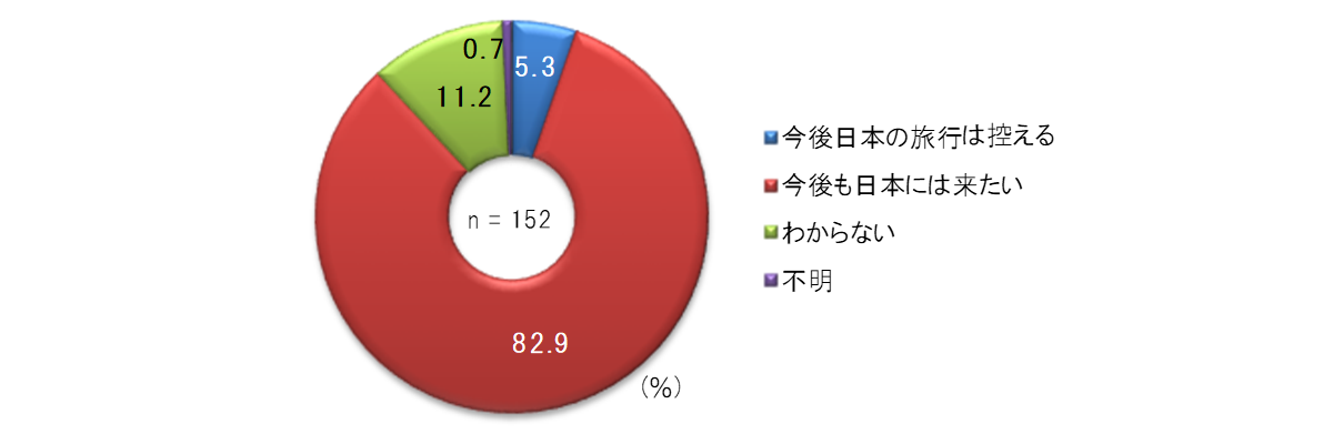 ・今回の地震を経験した上で今後の訪日意向をたずねたところ、8割以上の人が「今後も日本には来たい」(82.9%)と考えている。