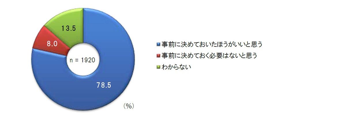 ・地震発生時の出勤に関しての取り決めについては、「事前に決めておいたほうがいいと思う」がおよそ8割を占める。