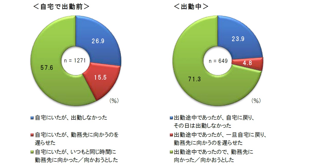 ・調査内容:地震発生当日の出勤状況/地震発生当日の勤務先からの出勤に関する指示/出勤後の状況 など