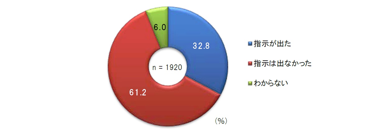 ・地震発生当日、勤務先から出勤に関する「指示が出た」は32.8%、「指示は出なかった」は61.2%となっており、多くの企業で指示が出ていなかったことが判明した。