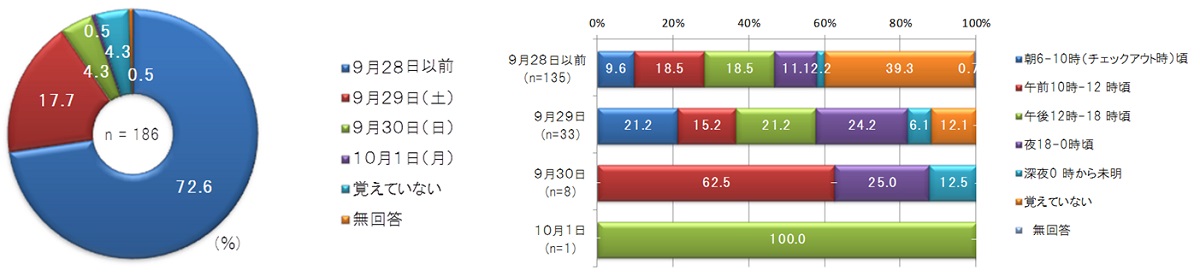 ・台風が来ることを知ったタイミングは、「9月28日以前」が72.6%、「9月29日」が17.7%と大半が台風上陸前に認知していた。