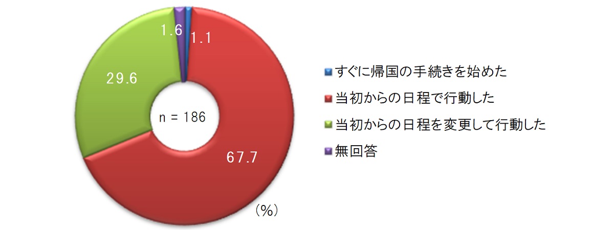 ・台風発生後の旅行行程の変更については、「当初からの日程を変更して行動した」が29.6%と約3割が台風の影響で行程の変更をしている。