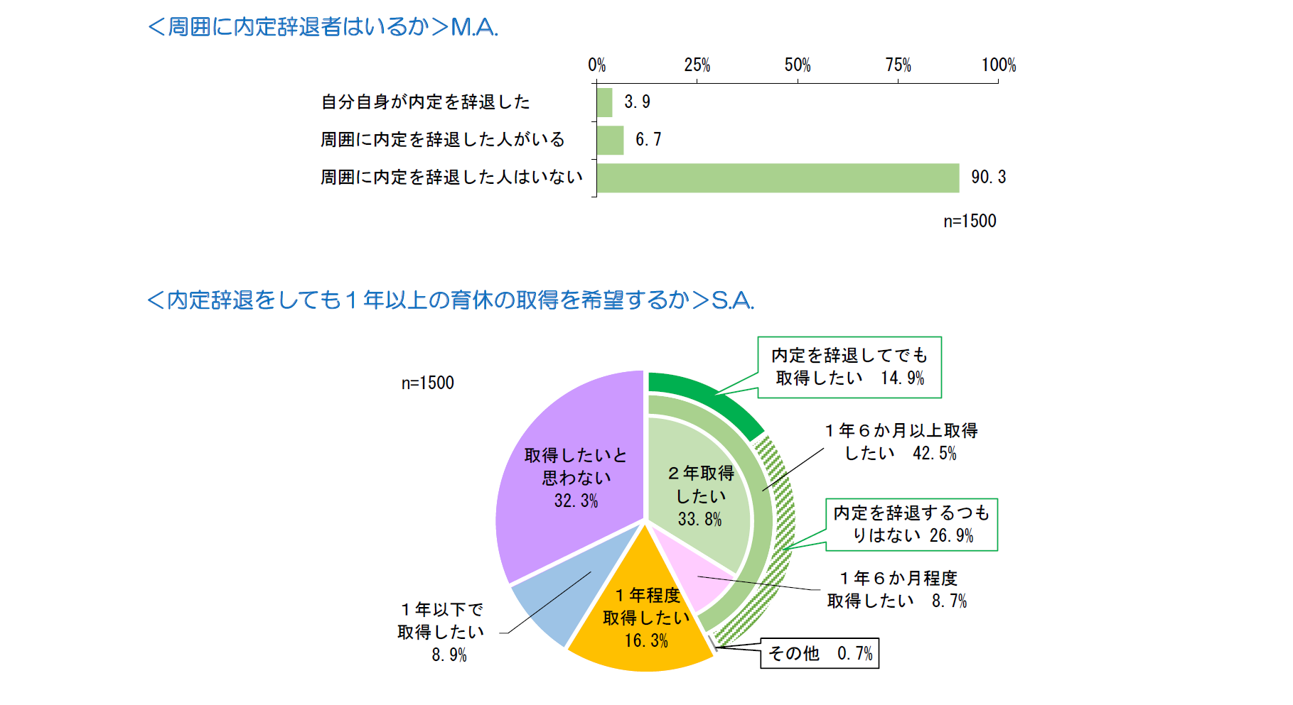 ・内定を辞退してでも1年以上の育休を取得したい人が14.9%いる。