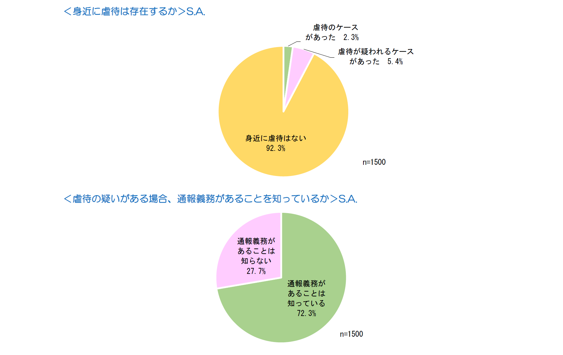 ・虐待のケースがあったとの回答者が2.3%、虐待が疑われるケースがあったとの回答者が5.4%で、合わせて7.7%が身近に虐待の懸念があったと回答している。
