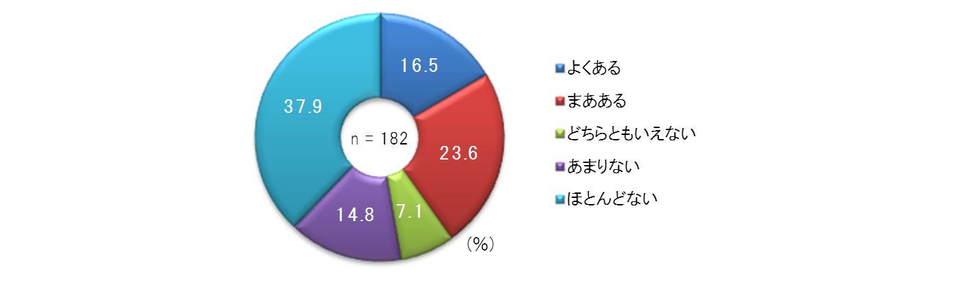・今回の台風の様に、大きな自然災害が母国でも一般的に良くあるかどうかについては、「ほとんどない」が37.9%と最も多く、「あまりない」14.8%を含めると、約5割が経験したことがない自然災害であったことがうかがえる。
