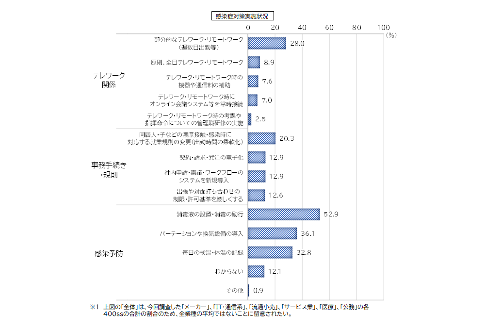 今回は、上記のうち「④企業内の感染症対策実施状況」について報告します。