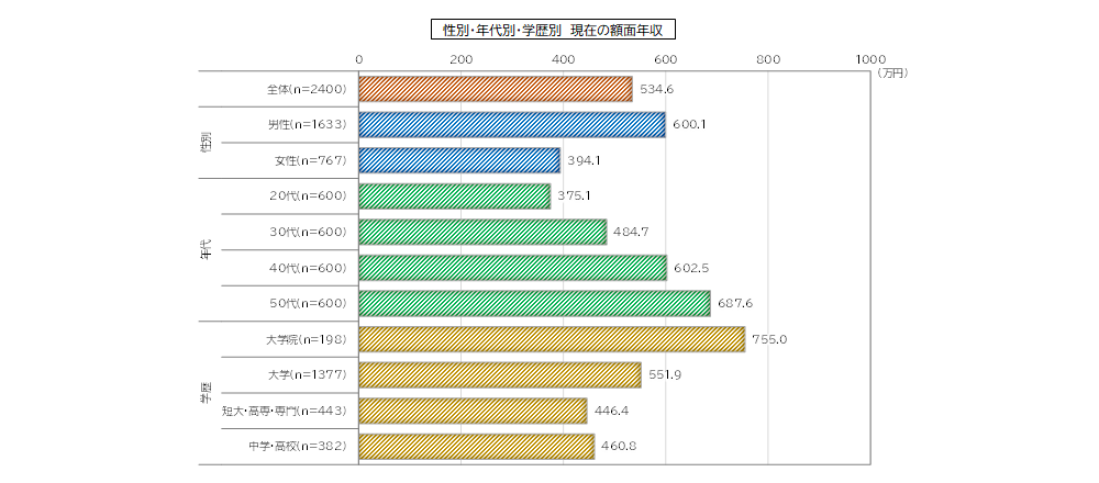 ・20-50代の額面年収は、534.6万円