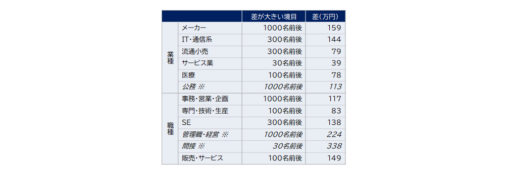トピック3 額面年収の差が大きい企業規模の境目と差額