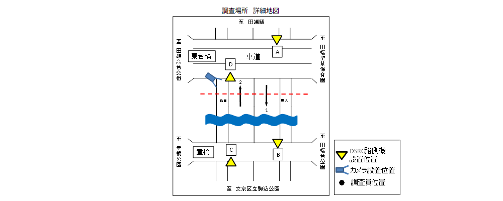 ・調査場所:東京都北区田端1丁目、2丁目付近の都道458号線(白山小台線)東台橋~童橋間