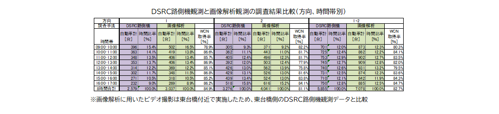 ※画像解析に用いたビデオ撮影は東台橋付近で実施したため、東台橋側のDSRC路側機観測データと比較