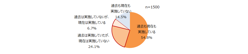 過去と現在のスポーツの実施状況について、「過去は実施しているが、現在は実施していない」が24.1%、「過去は実施していないが、現在は実施している」が6.7%という結果になりました。
