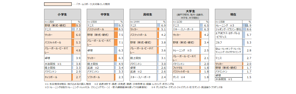 ※本調査では、2人以上でチームを組まないと実施できない競技を「チームスポーツ」と定義